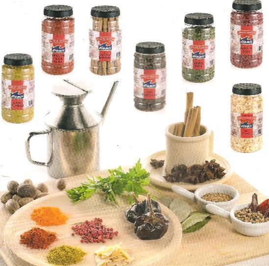 PIMENTON DULCE & PICANTE / PIMIENTA BLANCA / PEREJIL/ COLORANTE/ OREGANO/ AJO MOLIDO / CANELA MOLIDA / TOMILLO HOJAS / LAUREL / 760 GRS.